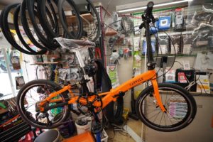 今回はカラクル エスの紹介です 軽量で持ち運びしやすい折りたたみロードバイクになっています まずは外観から 見た目も小ぶりながら折りたたむと全体の長さが 車輪の20インチよりも小さくなり高さは65cmになります その大き …